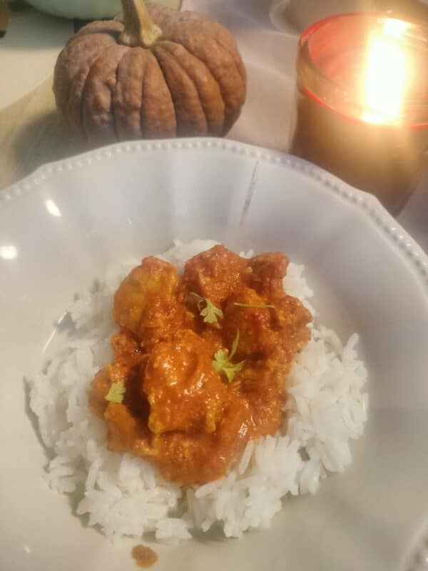 Hozzávalók: 2 ek. kókusz zsír 500g csirkemell filé 250g sütőtök 1 fej lila hagyma 1-2 kápia paprika 2 gerezd fokhagyma 2 cm gyömbér, vagy ½ tk. gyömbérpor 2 ek. currypor 3 tk. kurkuma só, bors 1 doboz kókuszkrém, hozzá 150 ml víz 1 csomag jázmin rizs Elkészítés: lépés: Kockázzuk fel a csirkemellet és a sütőtököt, […]