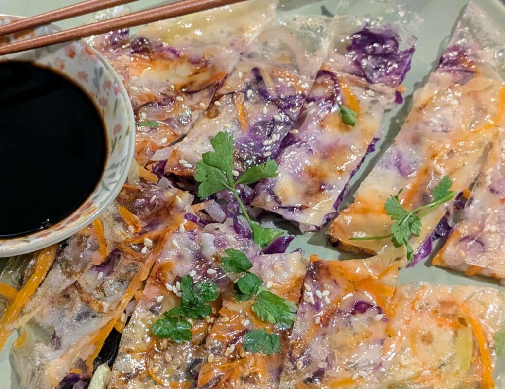 Hozzávalók: 1 csomag rizspapír 1 ek. oliva olaj Töltelék: ⅓ fej lila káposzta legyalulva 2 fej vöröshagyma vékonyra szelve 4-5 gerezd fokhagyma reszelve 2-3 marék sajt durvára reszelve só, bors ízlés szerint újhagyma a díszítéshez Mártogatóshoz: 1 dl szójaszósz 1 ek. sós mogyorókrém opcionális (nagyon kellemes, krémes ízvilágot kölcsönöz a martogatónak) […]