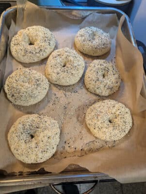 - lépés: A bagelek tetejét megszórjuk magvakkal / sóval.