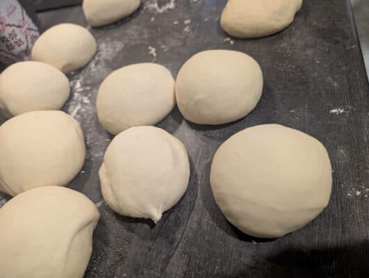 - lépés: 8 darabra osztjuk, majd gömbölyítés után sütőpapíron, hagyjuk további 10 -15 percet konyharuhával lefedve pihen