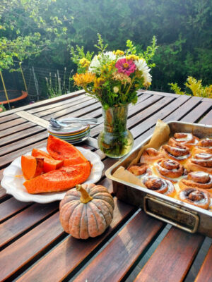 - lépés: Kb. 3 cm széles szeletekre vágjuk a csigát és sütőpapírral bélelt tepdibe fektetjük őket. Letakarva újabb 20 percig pihentetjük. Közben a sütőt előmelegítjük 180˚C-ra.