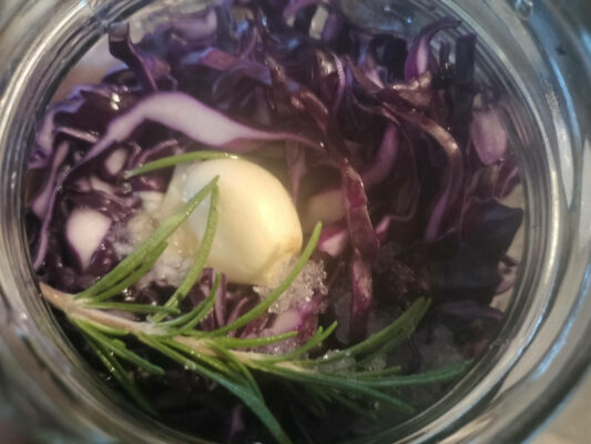 - lépés: Tegyük sterilizált befőttes üvegekbe a káposztát a fűszerekkel vegyítve. Használhatunk még további fűszereket is, gyömbért, borókabogyót, lilahagymát, narancs gerezdet (csak a fantáziánk szabhat határt, érdemes kisérletezni)…