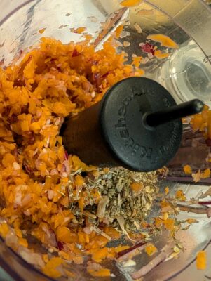 - lépés: A zöldségeket meghámozzuk, majd aprító gépben ledaráljuk. A fűszereket is ekkor adjuk hozzá.