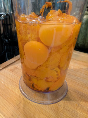 - lépés: A sütőtököt kikaparjuk a héjából és a tojásokkal összeturmixoljuk, hozzá keverjük az olajat.