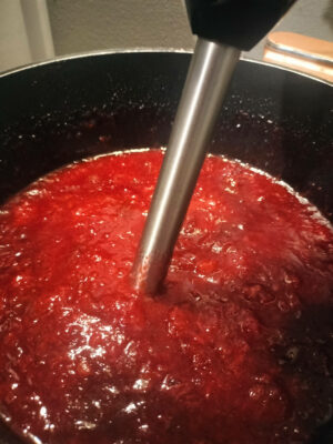 4. Amint kész vegyük le a meleg főzőlapról, ha darabosan szeretjük, máris mehet a kiforrázott üvegekbe, ha inkább homogén lekvárt szeretnénk, akkor mielőtt üvegekbe töltjük turmixoljuk egyenletesre.