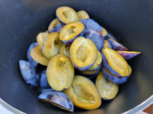 1. A szilvát mossuk meg, magozzuk ki, majd vágjuk fel nagyobb darabokra, mérjük meg a kész mennyiséget.