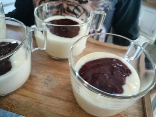 Tegyük poharakba és egy evőkanál lekvárral dobjuk fel.