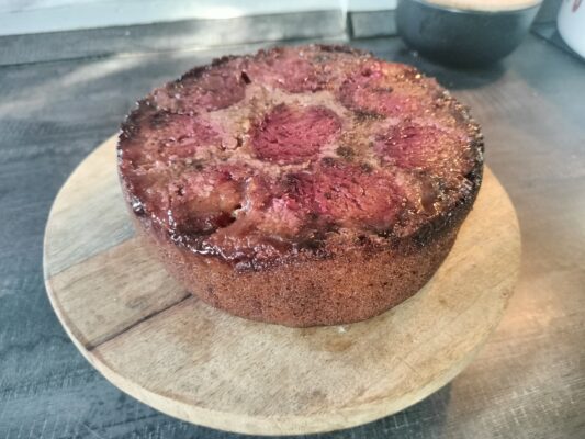 - lépés: Vajazzunk ki egy nagyjából 18 cm kapcsos tortaformát, kevés barna cukorral és fahéjjal hintsük meg, helyezzük rá a megfelezett szilvákat, belsejükkel lefelé.