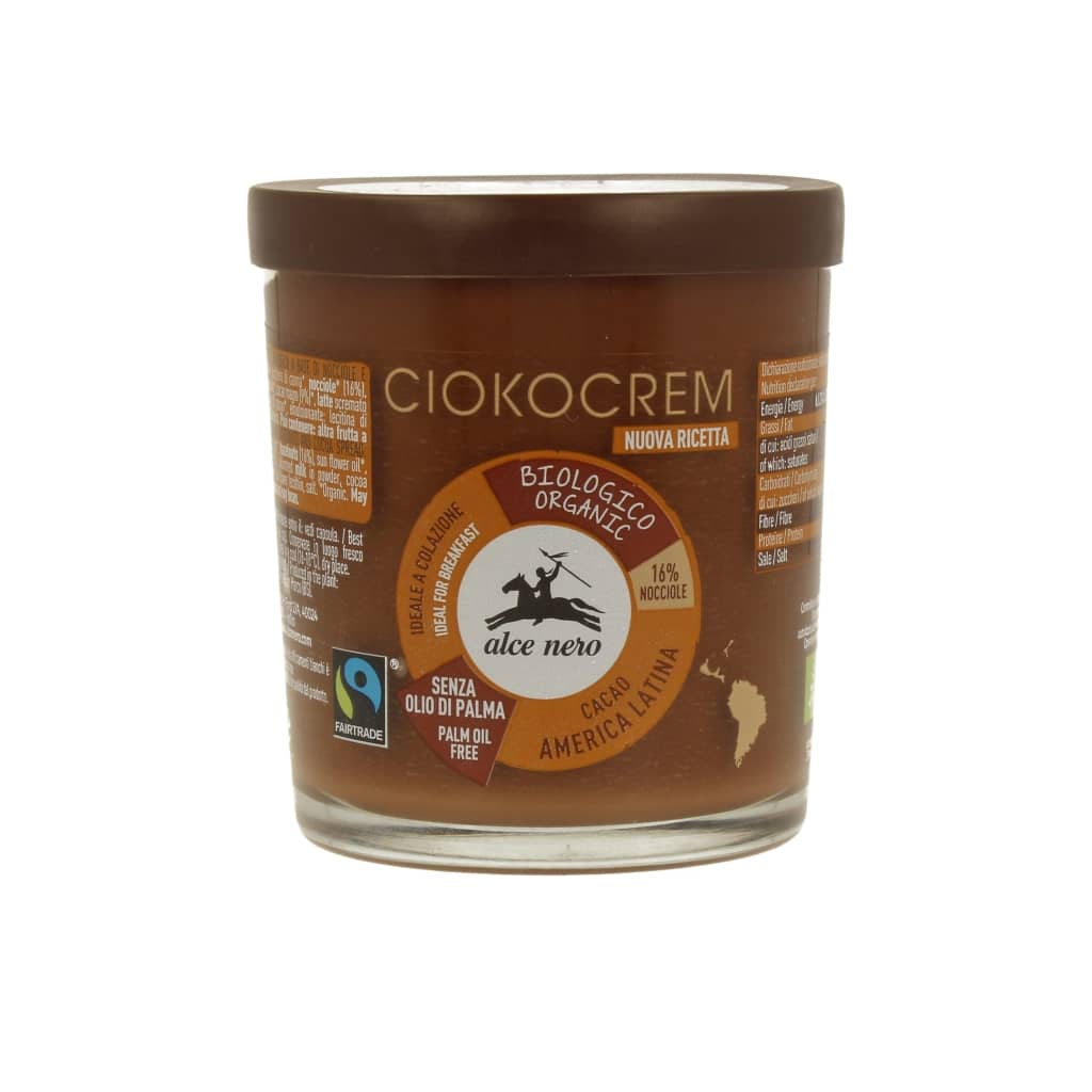 Összetevők: nádcukor*, napraforgóolaj*, mogyoró paszta (16%), kakaópor*(9%), soványított tejpor, kakaóvaj*, emulgeálószer: napraforgó lecitin, só.*Ökológiai termesztésből. Nyomokban más magvakat és szóját tartalmazhat.