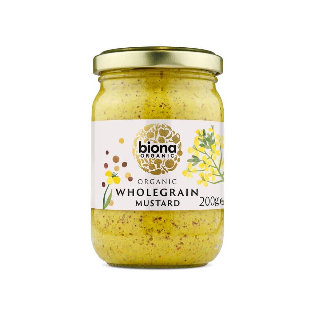 Összetevők: ecet*, víz, fehér mustármag*, fekete mustármag*, tengeri só, agave szirup*, kurkuma*, koriandermag*, édeskömény*.