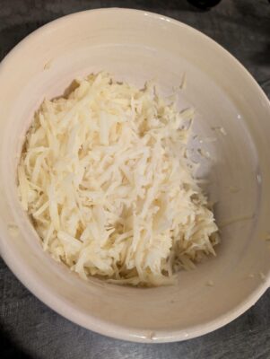 - lépés: A burgonyát nagy lyukú reszelőn lereszeljük.