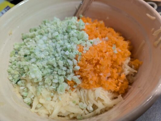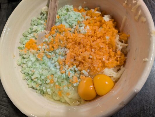 - lépés: Serpenyőt kevés olajjal megkenjük, és kézzel kis gombócokat formázunk a zöldséges mixből, majd a serpenyőben lelapogatva őket, aranybarnára sütjük.